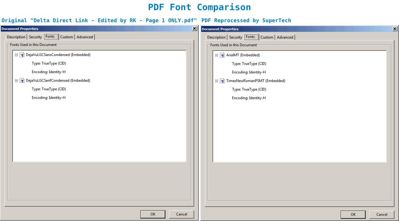 As an experiment, I changed the paragraph styles of my original sample document document so that all the TOC paragraph styles now use the Windoze-standard Times New Roman font and all the other paragraph styles use the Windoze-standard Arial font. I made these changes in an attempt to replicate the font substitutions that were preformed on your computer when you produced your version of my original PDF. I did not knowingly make any other changes.