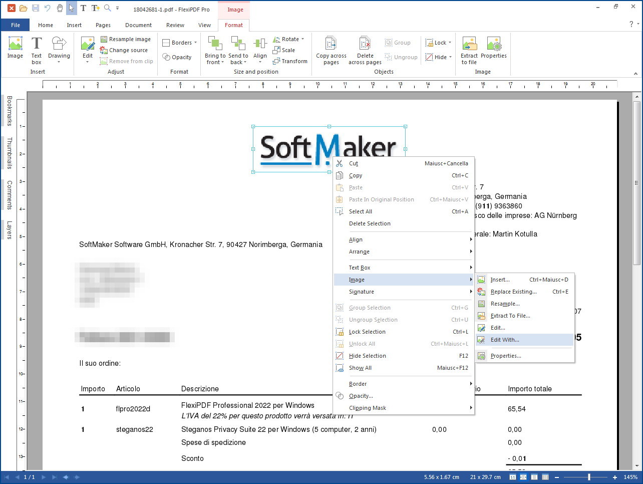 Try to open your invoice (yes, I bought it) > right click on your logo (top of the page) > menu Edit ...