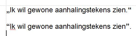 Please look at the position and appearance of the quotation marks in the attachment. I would like to avoid such curly quotation marks and quotation marks positioned according to the writing customs of the language used for spell-checking. (In the first example, the old Dutch custom of starting a quotation at the bottom of a line of text is shown.) I prefer quotation marks to be unformatted, plain and simple, by default, i.e. look like this: ' and " . How do I avoid the automatic formatting of quotation marks ?