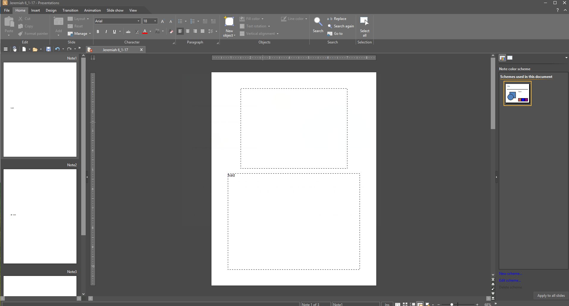 When I open the notes page in Presentations 2018, revision 933, I get a blank spot where the screenshot of my slide should be. While it doesn't affect the ability to add notes, it is very difficult and distracting to work with. Screenshot should explain the problem.