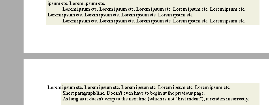 Paragraph shading is not applied correctly when you have paragraphs with indent, and the paragraph itself is not long enough to wrap to a new line - long paragraphs "force" correct rendering, while short paragraphs don't fill the left section of the document with the desired background color...