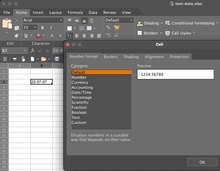 I made another test file (attached), empty too except for 1 cell filled with today's date. The cell is formatted YYYY-MM-DD, which should result in 2022-07-20.