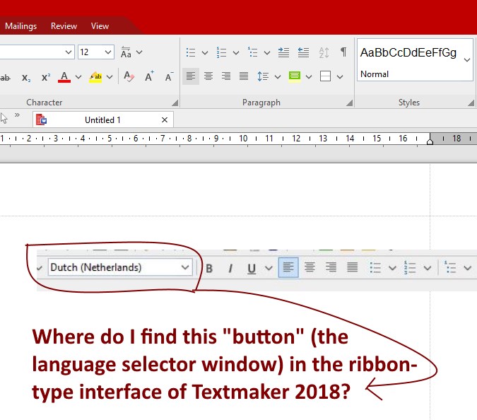 Re: Where is the language selector button in the ribbon-type interfaces of Textmaker 2018?