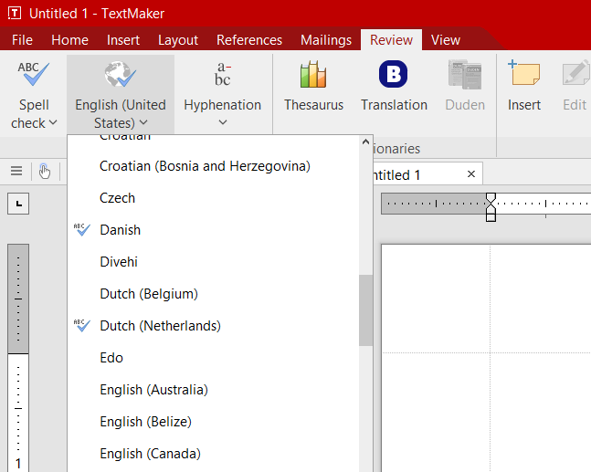 Re: Where is the language selector "window" in the ribbon-type interfaces of Textmaker 2018?