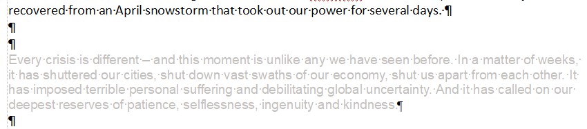 I'm not sure if this is a new problem, but when I copy text from (for example) Yahoo Mail or Gmail and paste it into some TextMaker documents the result is grayed out text as shown in the attached screen shot. This problem does not seem to arise if I paste the text into a new TextMaker document, but I don't see anything different in those TextMaker documents where this problem shows up. I can't find anyway to un-gray the pasted text, but the following "workaround" did solve my immediate problem: