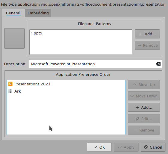 It can not be assigned manually neither (at least on KDE Plasma). This last issue of not being able to change the mime icons manually via KDE System Settings also affects TM and PM.