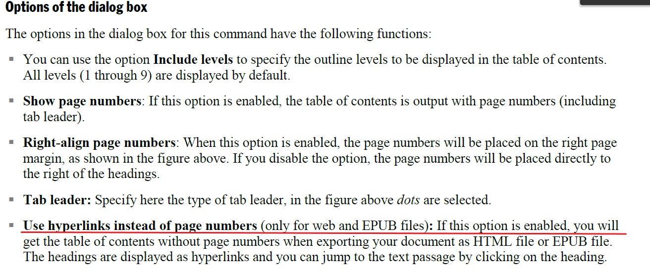 Is there a "manual" somewhere that I should be accessing rather than asking this question here? Clicking on Help led me to "Tools>Generate Table of Contents ..." but, unless I am missing something, it kind of left me hanging there.