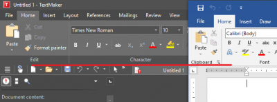 Please see these two screenshots. Red is Textmaker and Blue is MSFT Office 2016.