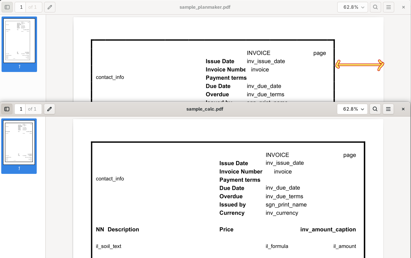 When previewing attached file and/or exporting to pdf, it's content width on page differs from what Libreoffice shows. Seems like width changes proportionally for every column. Can this be fixed/configured so that previews would match?